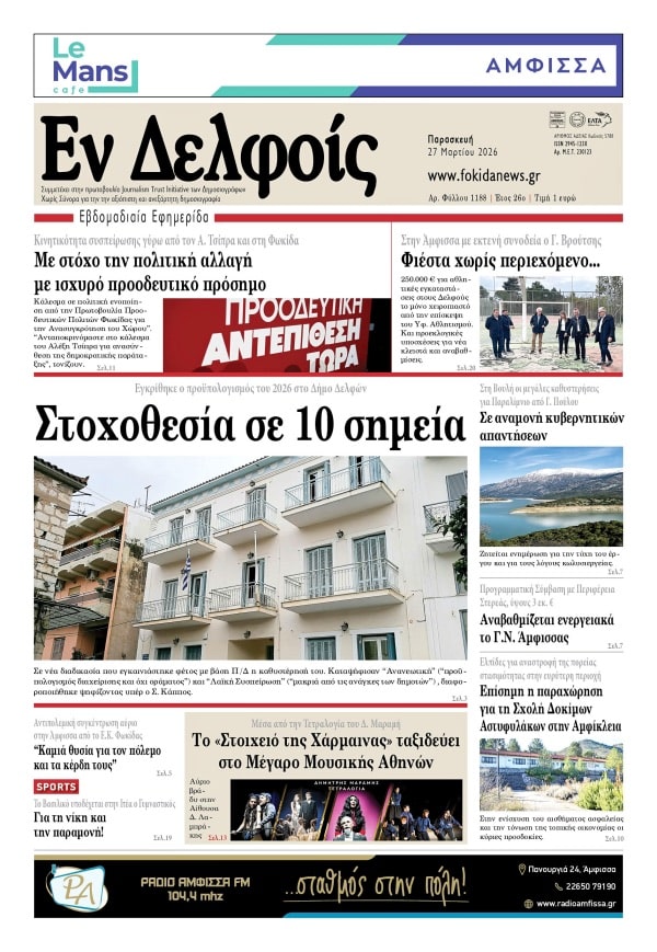 Ενημερωτικό δελτίο από το Δήμο Δελφών Στο Μέγαρο Μουσικής Αθηνών παρευρέθηκε το βράδυ του Σαββάτου, 28 Μαρτίου 2026, ο Δήμαρχος...