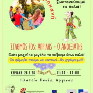 Η Παιχνιδομηχανή επιστρέφει και σας καλεί σε έναν ακόμα σταθμό γεμάτο παιχνίδι, χαμόγελα και ανοιξιάτικη ενέργεια! Κυριακή 26.04.2026 11:00 –...