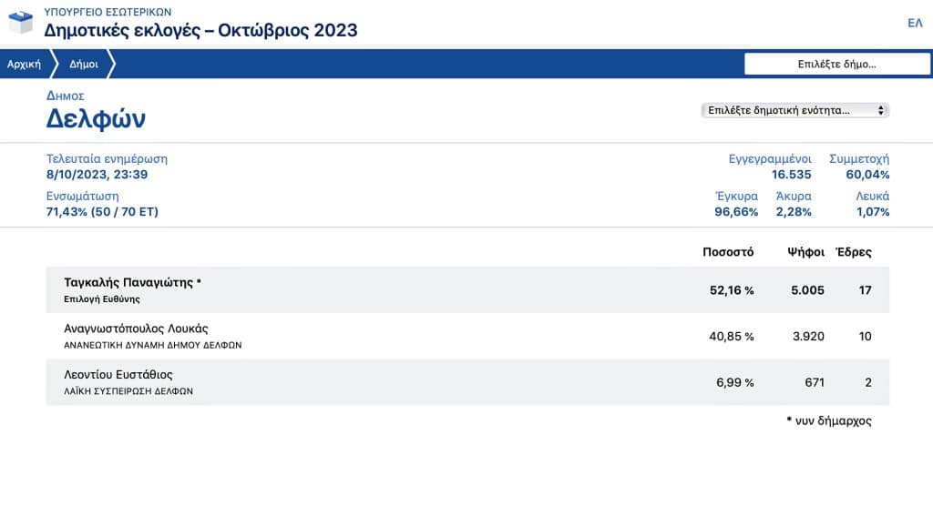 Δείτε τη ροή των αποτελεσμάτων στο Δήμο Δελφών ΕΔΩ