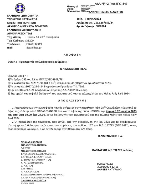 Δημος Δελφων Κυκλοφοριακές ρυθμίσεις στην Ιτέα για το Hellas Rally Raid 2024 30 Μαΐου 2024 8434 0 Ανακοίνωση από το Λιμεναρχείο Ιτέας ΣΧΕΤΙΚΑ ΑΡΘΡΑ Συγκίνηση στις πρώτες εκδηλώσεις μνήμης για το Ολοκαύτωμα του Ελαιώνα Το Σάββατο η τελετή υπογραφής του Πρωτοκόλλου Αδελφοποίησης των Δήμων Δελφών και Λεβερκούζεν Ερώτηση Λογοδοσίας για την κατάσταση του Δημοτικού Σταδίου Άμφισσας