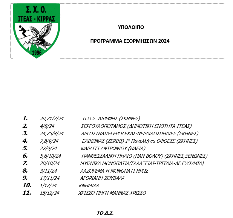 Δημος Δελφων ΣΧΟ: Υπόλοιπο πρόγραμμα εξορμήσεων 2024 28 Ιουλίου 2024 1184 0 Ανακοίνωση από το ΣΧΟ Ιτέας-Κίρρας ΣΧΕΤΙΚΑ ΑΡΘΡΑ Συγκίνηση στις πρώτες εκδηλώσεις μνήμης για το Ολοκαύτωμα του Ελαιώνα Το Σάββατο η τελετή υπογραφής του Πρωτοκόλλου Αδελφοποίησης των Δήμων Δελφών και Λεβερκούζεν Ερώτηση Λογοδοσίας για την κατάσταση του Δημοτικού Σταδίου Άμφισσας
