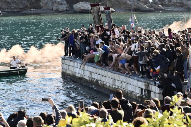 Στη συνέχεια, στο λιμάνι της Ιτέας, πραγματοποιήθηκε η κατάδυση του Τιμίου Σταυρού και ο καθαγιασμός των υδάτων, χοροστατούντος του Σεβασμιωτάτου Μητροπολίτου Φωκίδας κ.κ. Θεόκτιστου.