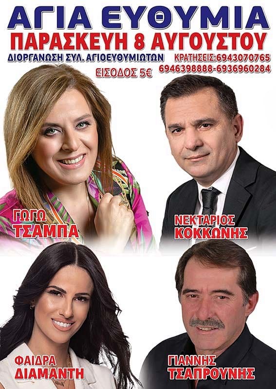 Το ΔΣ του Συλλόγου Αγιοευθυμιωτών, σχετικά με τη μεγάλη δημοτική βραδιά της 8ης Αυγούστου, η οποία θα πραγματοποιηθεί στην Αγία Ευθυμία, θέλει να καταστήσει σαφές ότι το κόστος της εισόδου είναι 5€, το οποίο παραμένει σταθερό για πολλά χρόνια και είναι το πιο χαμηλό για εκδηλώσεις αυτού του επιπέδου.