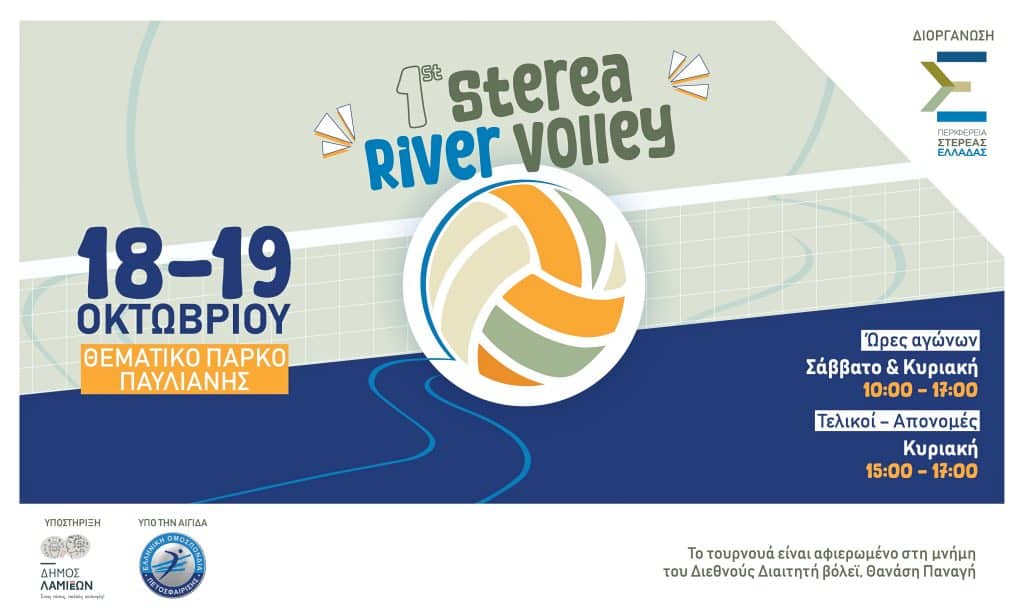 Η Περιφέρεια Στερεάς Ελλάδας ανακοινώνει τη διεξαγωγή διήμερου Περιφερειακού τουρνουά  μικτών αγώνων βόλεϊ με την ονομασία: «1ο STEREA RIVER VOLLEY», υπό την αιγίδα της Ελληνικής Ομοσπονδίας Πετοσφαίρισης και με την υποστήριξη του Δήμου Λαμιέων.