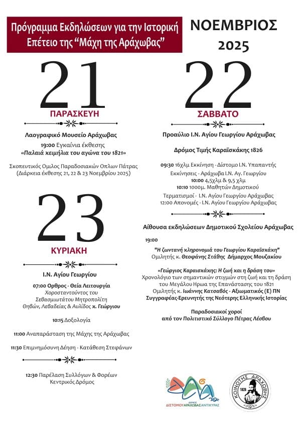Εκδηλώσεις Οι εκδηλώσεις για την επέτειο της μάχης της Αράχωβας 10 Νοεμβρίου 2025 388 0 ΣΧΕΤΙΚΑ ΑΡΘΡΑ “Επέτειος” στην Κ.Λ. Άμφισσας “Στο νησί του Άμρουμ” η Κ.Λ. Άμφισσας Αιμοδοσία στο Γαλαξίδι στις 19/11