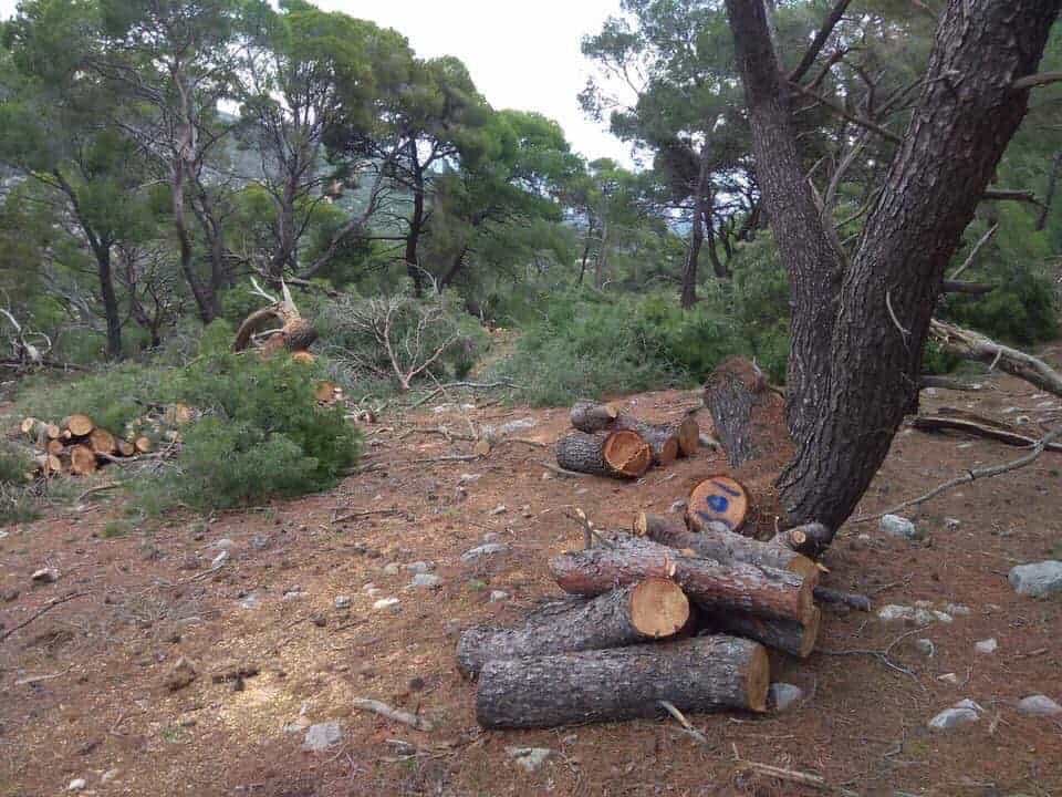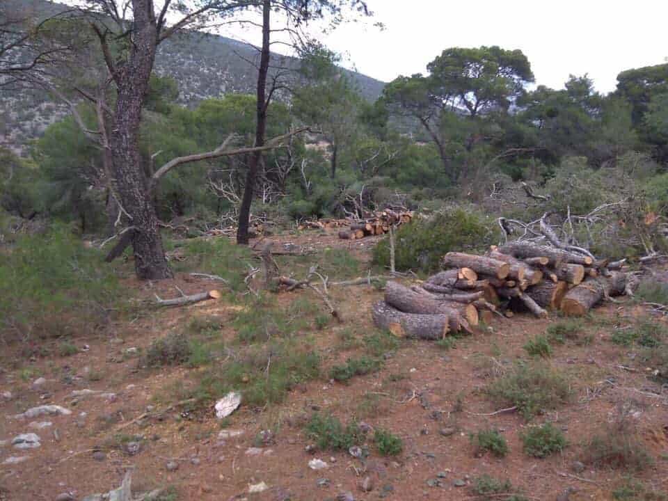Επίσης παρόλο που είχαμε εκφράσει την αντίθεση μας μέσω τηλεφωνικών επικοινωνιών και κατ’δίαν συναντήσεων με τους ως άνω φορείς και τους είχαμε ζητήσει να εξεταστεί η δυνατότητα τροποποιήσεων της μελέτης περιβαλλοντικών επιπτώσεων ώστε να επιτευχθεί η λιγότερη δυνατή παρέμβαση εντός του πευκοδάσους, μιας και ήταν αδύνατη σύμφωνα με τα λεγόμενα τους να εξαιρεθεί πλήρως η κοπή των δέντρων, με έκπληξή μας σήμερα διαπιστώσαμε ότι η εταιρεία έχει προβεί σε υλοτόμηση δέντρων στην συγκεκριμένη περιοχή.