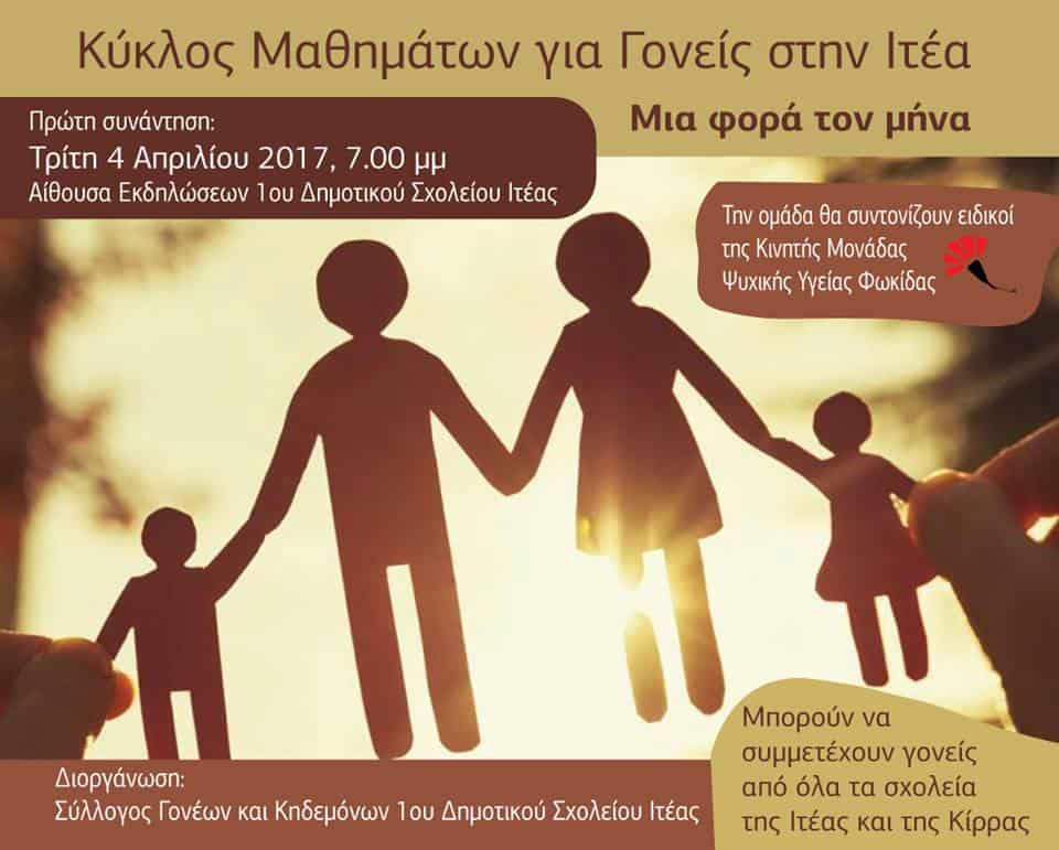 Κύκλος Μαθημάτων για γονείς θα ξεκινήσει στην Ιτέα από σήμερα Τρίτη 4 Απριλίου στις 7.00...